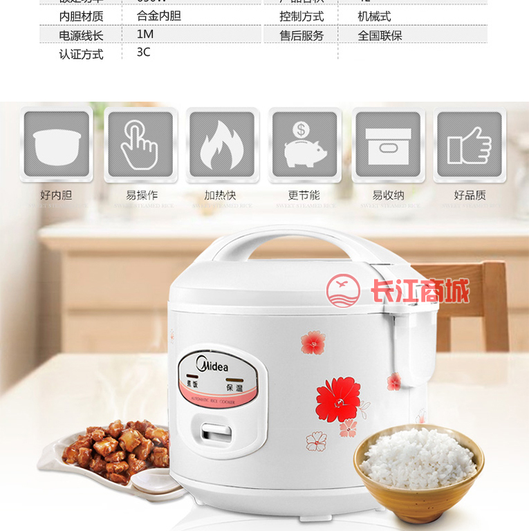 品牌:美的 型号:YJ408 类别:电饭煲 容量: 4L