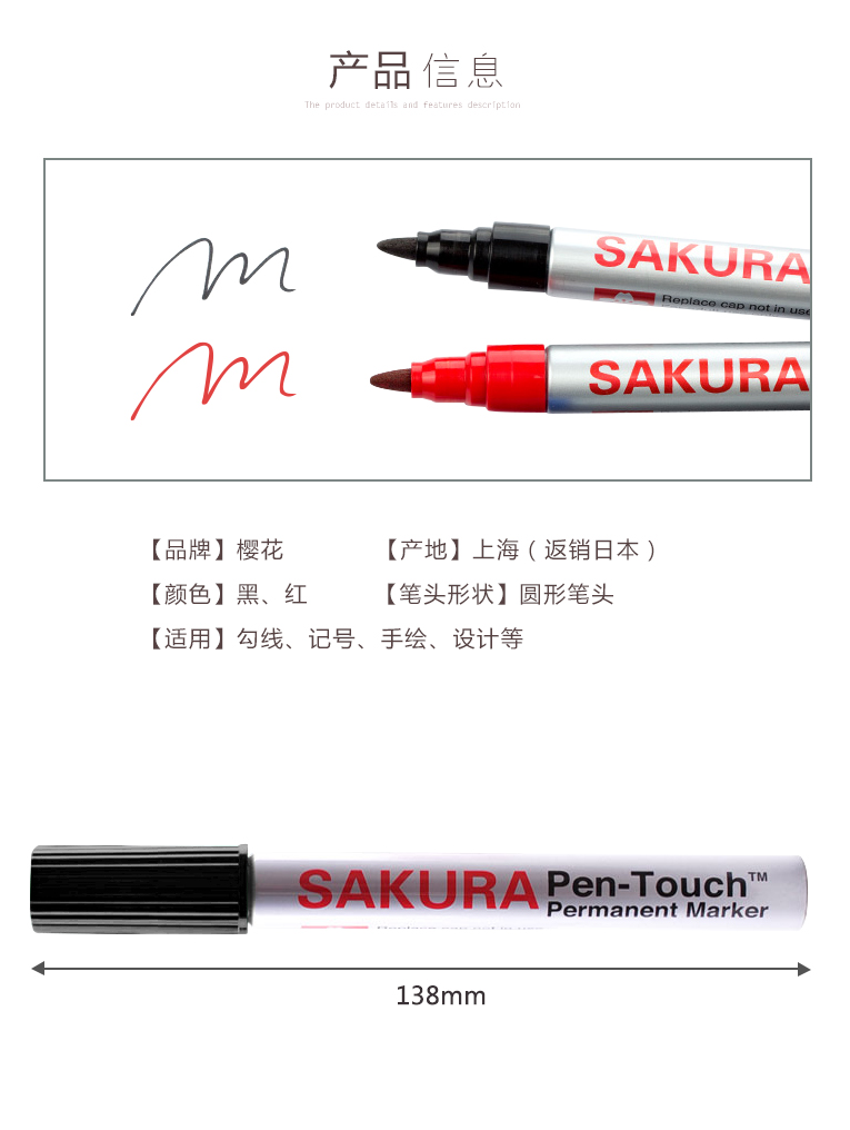 :樱花 规格:长138mm 类型:单头油性笔 颜色:红/黑