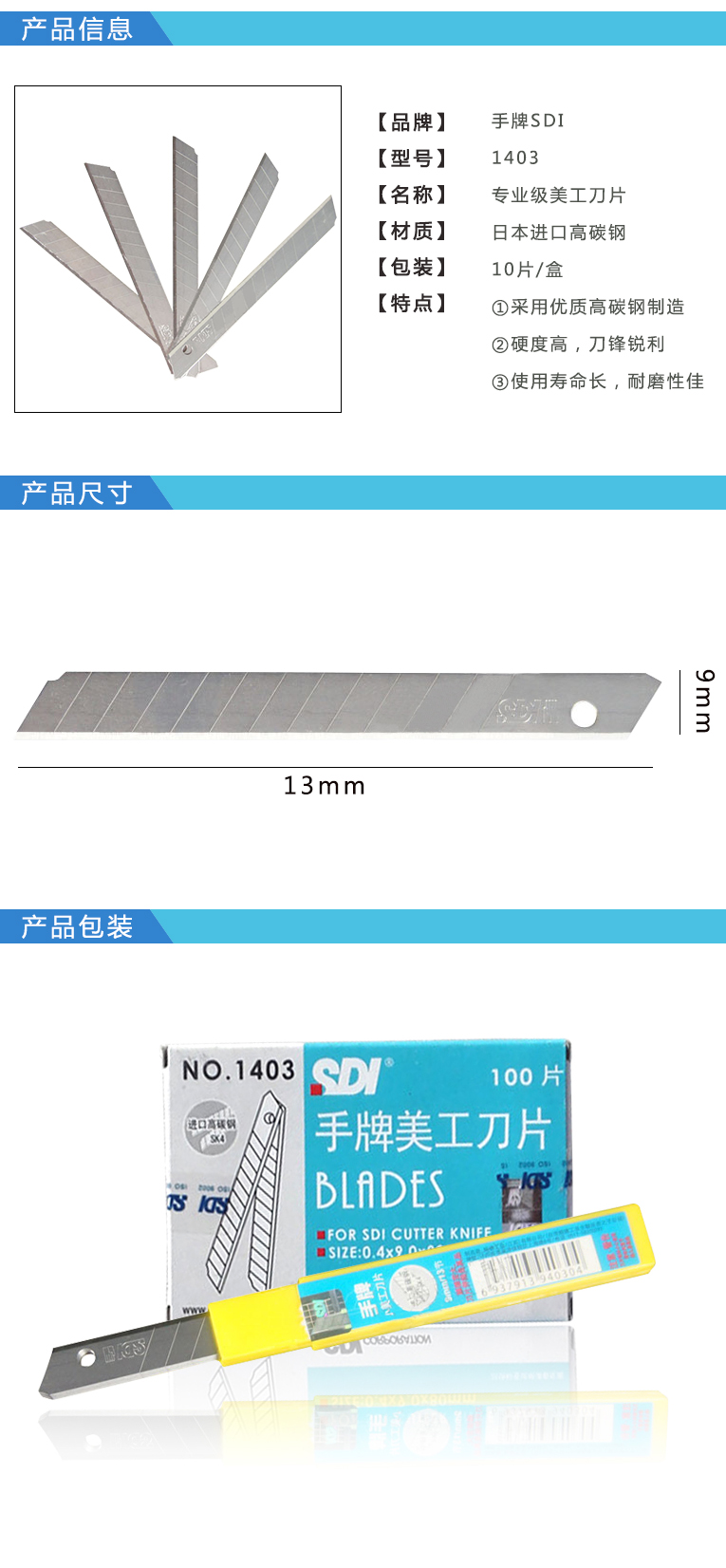 品牌:手牌SDI 型号:1403 类别:美工刀片