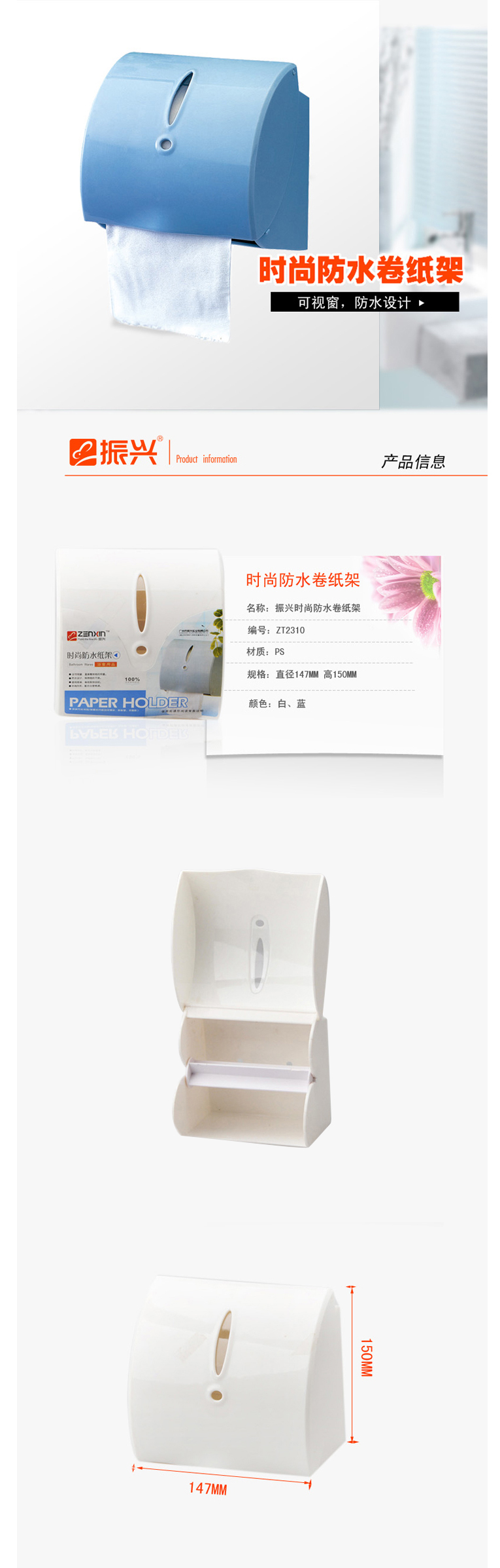 品牌:振兴 型号:ZT2310 类型:防水卷纸筒