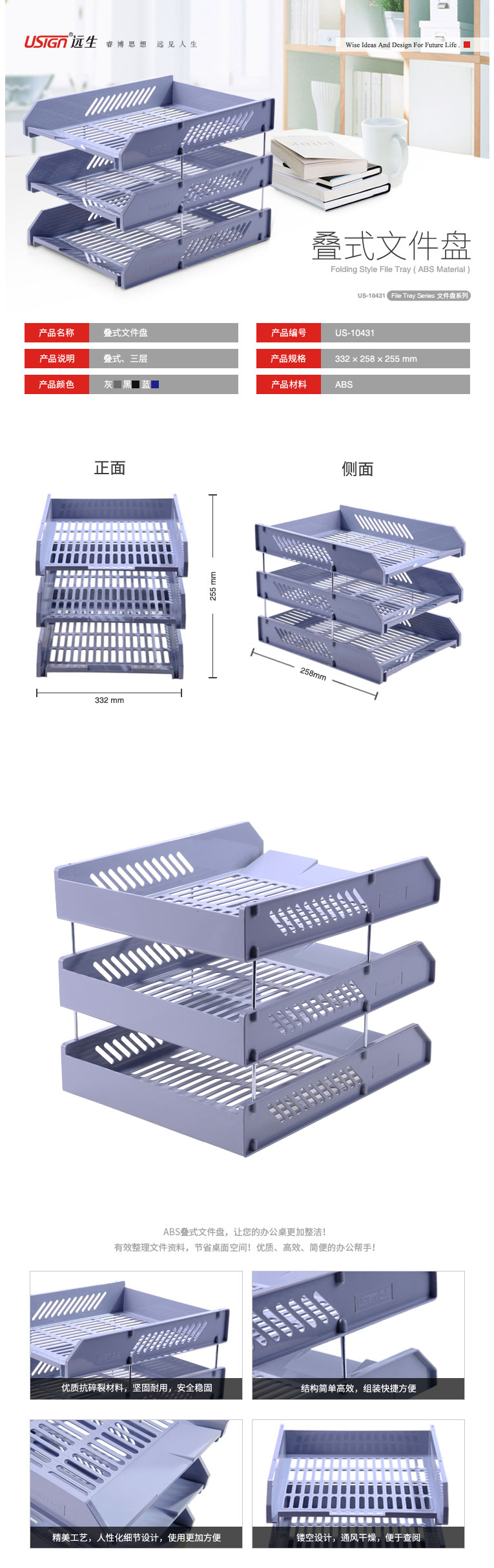 品牌:远生 型号:10431# 类型:三层文件盘