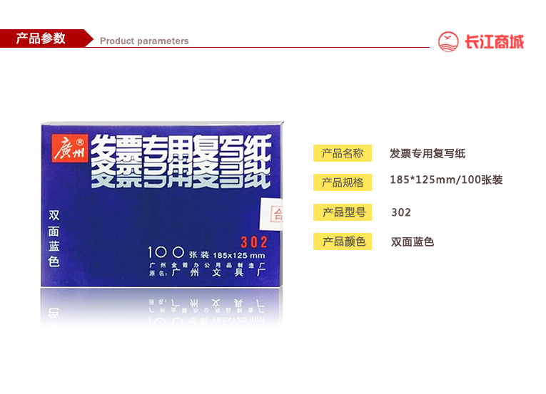 品牌:广州 型号:302 名称:发票专用复写纸 规格:185*125mm / 100张装