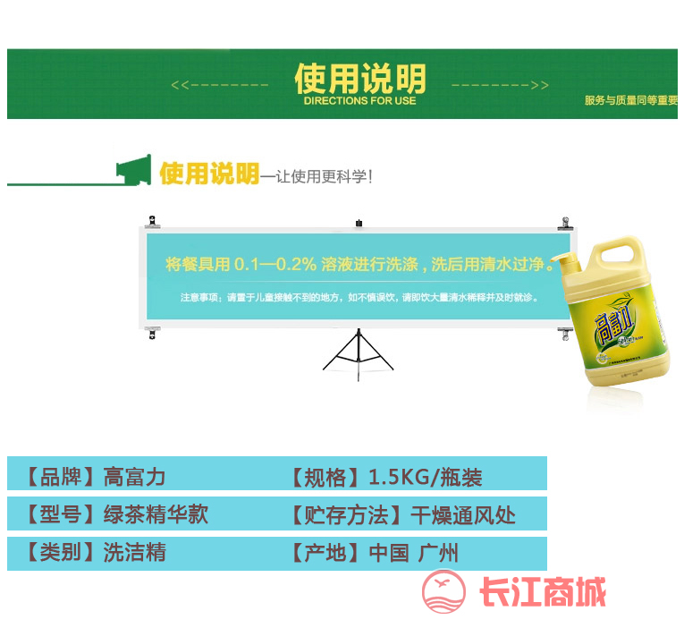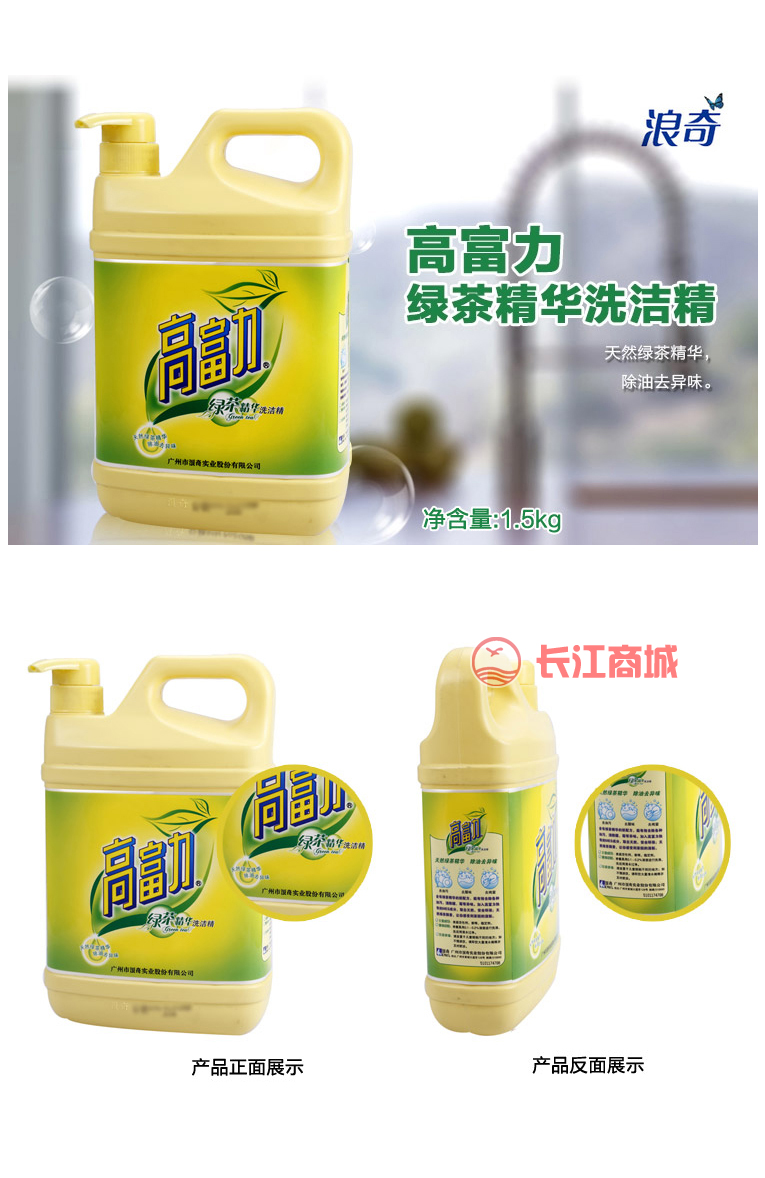 品牌:高富力 型号:绿茶精华款 规格:1.5kg/瓶 产品名称:洗洁精