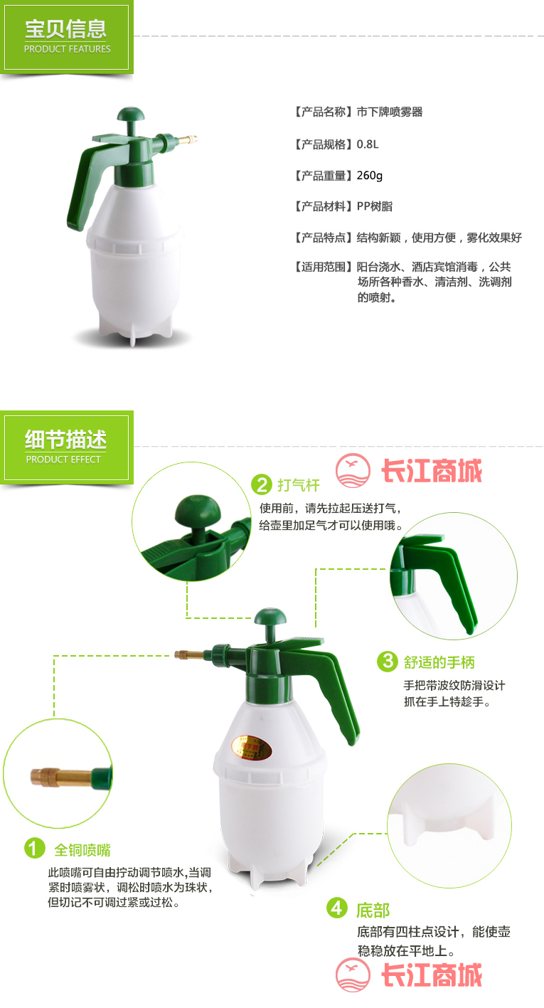 品牌:市下牌 规格:0.8L 类型:塑料喷壶 产品重量:260g 产品材料:pp树脂