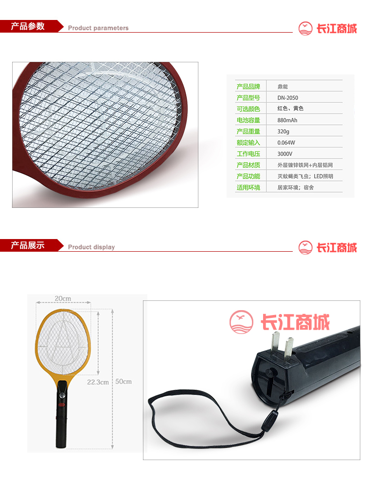 品牌:鼎能 型号:DN-2050 类别:电蚊拍(带灯) 颜色:红色/黄色