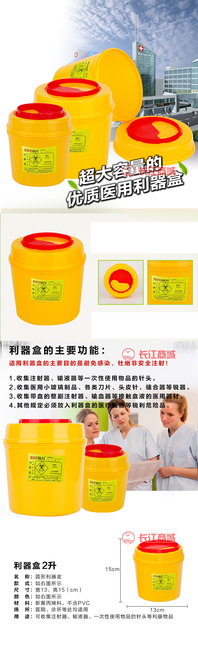 品牌:ZULI/驻力 规格:2L 名称:锐器盒 形状:圆形 尺寸:13*15cm 颜色:黄色