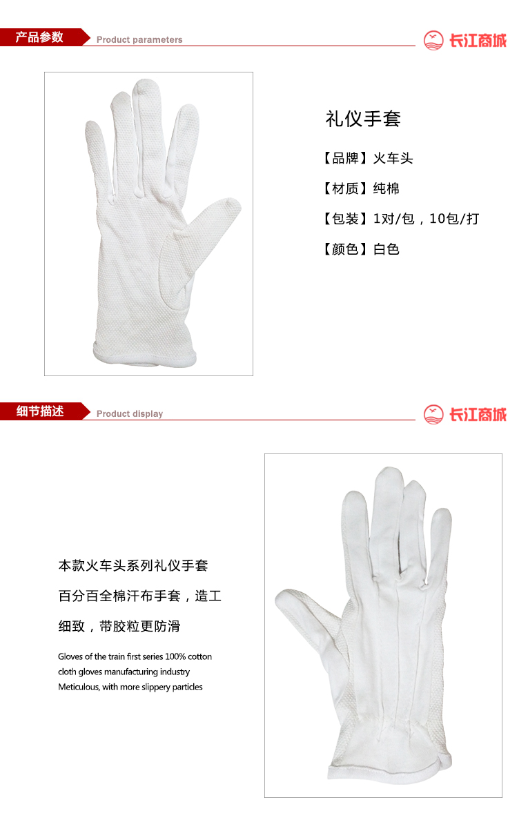品牌:火车头 类别:礼仪手套(带胶粒) 颜色:白色 材质:纯棉