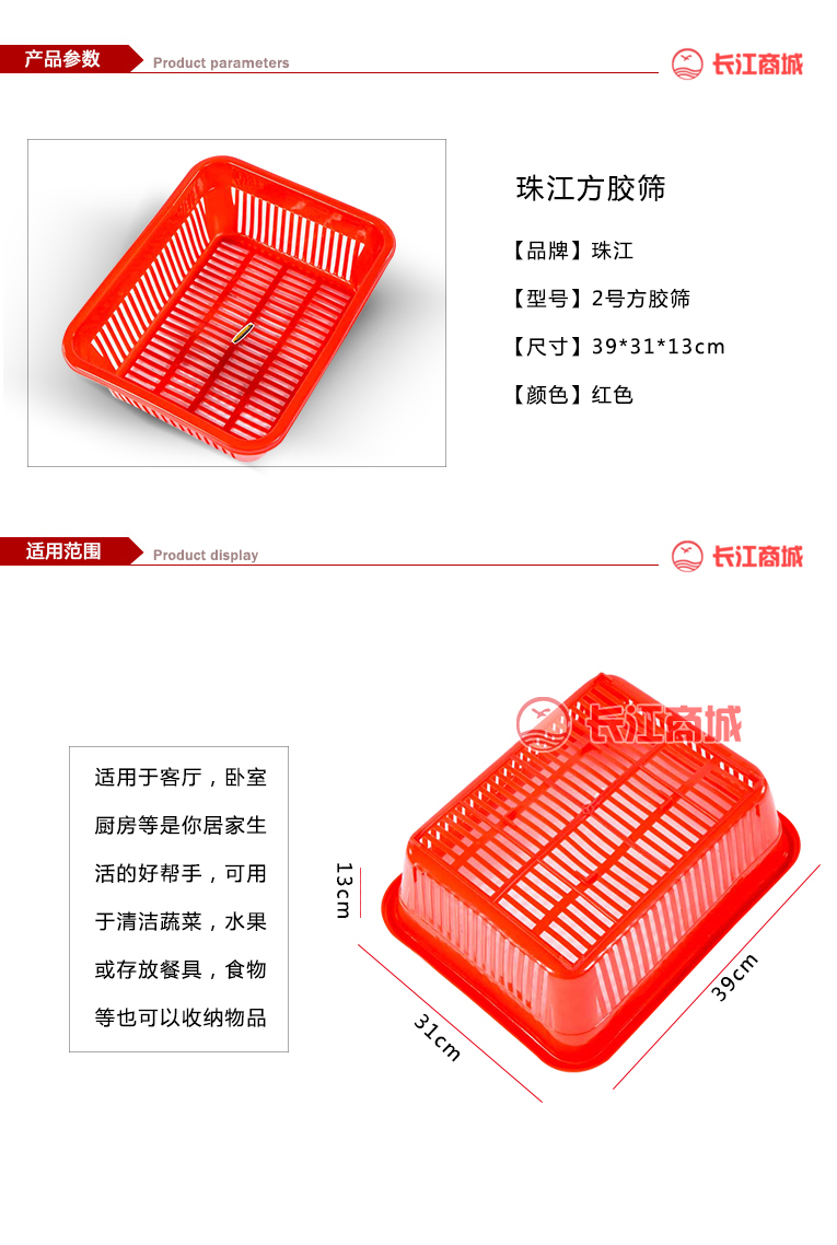 品牌:珠江 型号:2号 类别:方筛 尺寸:39*13*31cm 颜色:红色