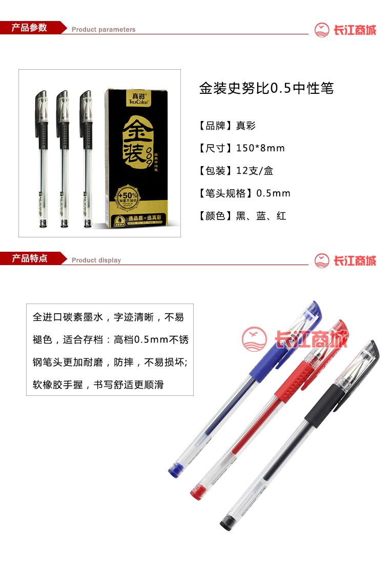 品牌:真彩 型号:金装史努比0.5 颜色:红/黑/蓝 包装12支/盒