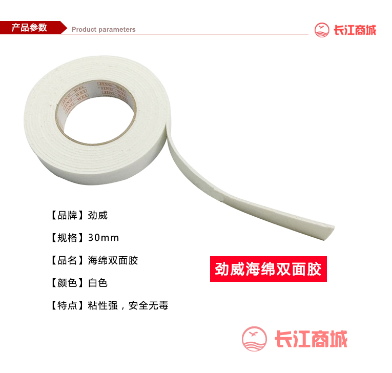 品牌:劲威 品名:海棉双面胶 规格:30mm 颜色:白色