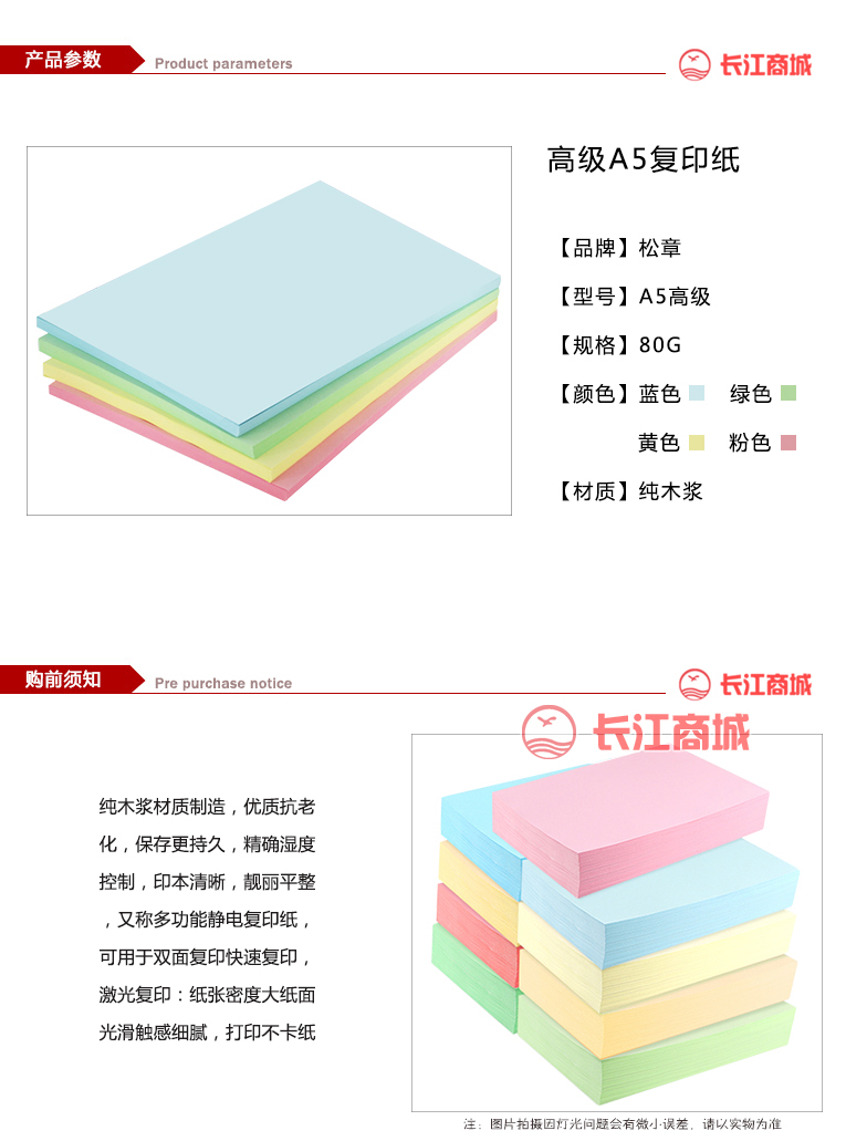品牌:松章 颜色:粉红 / 蓝色 / 绿色 / 黄色 规格:A5 材质:纯木浆