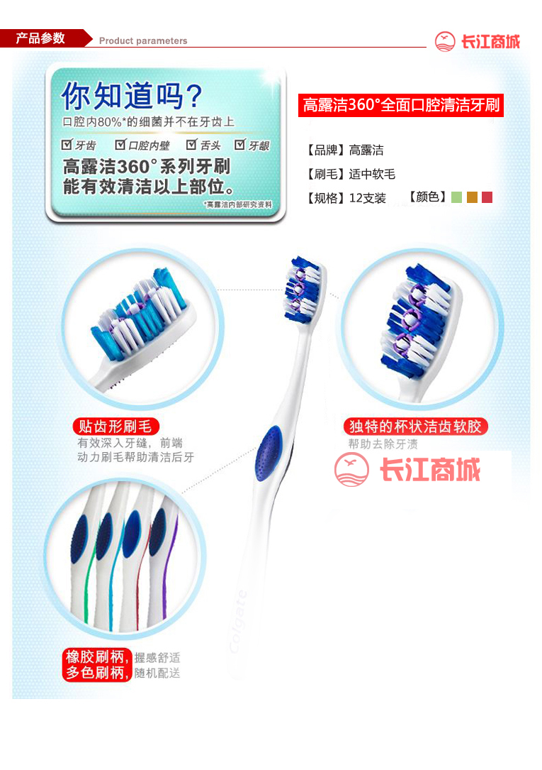 品牌:高露洁 规格:12支/盒 品名:牙刷