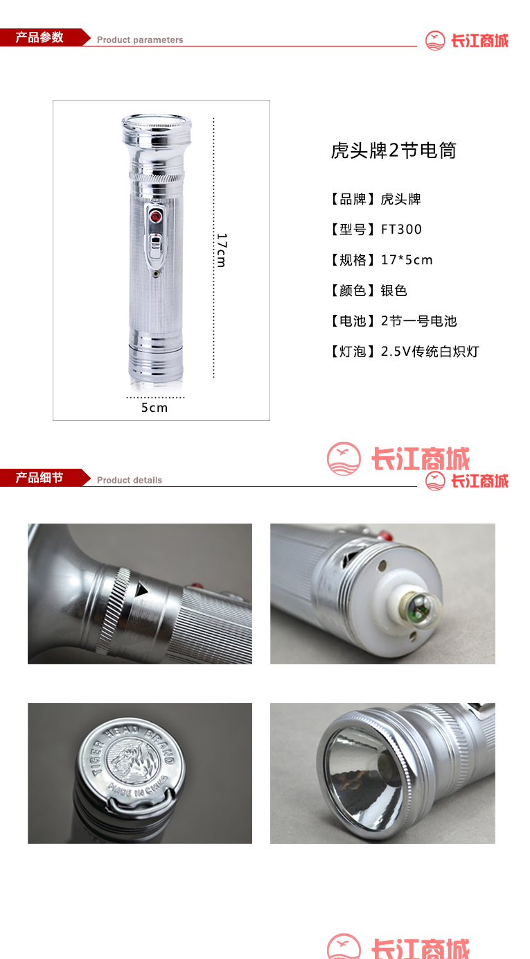 品牌:虎头牌 品名:照明灯/电筒 型号:FT300 颜色:银色