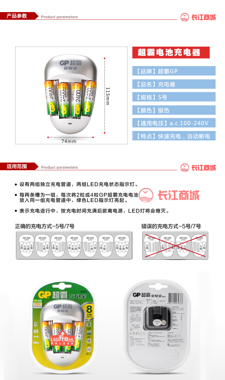 品牌:GP超霸 型号:5号/2400毫安 规格:115x74mm 品名:充电器 颜色:银色