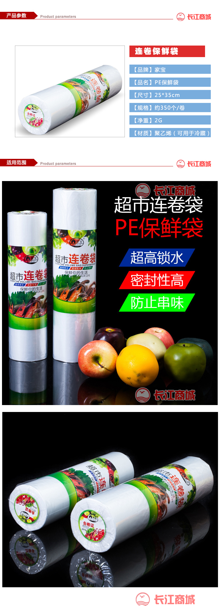 品牌:家宝 品名:保鲜袋 规格:25*35 材质:PE