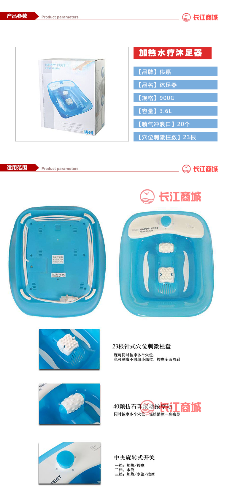 品牌:伟嘉 品名:沐足器 型号:4038H 规格:900G