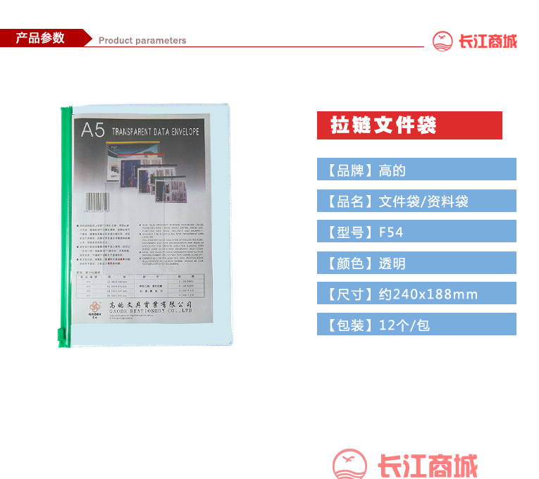 品牌:高的 品名:拉链式文件袋 规格:A5