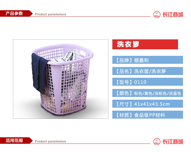 品牌:顺嘉利 品名:洗衣箩/洗衣筐 型号:0110 尺寸:41x41x43.5cm