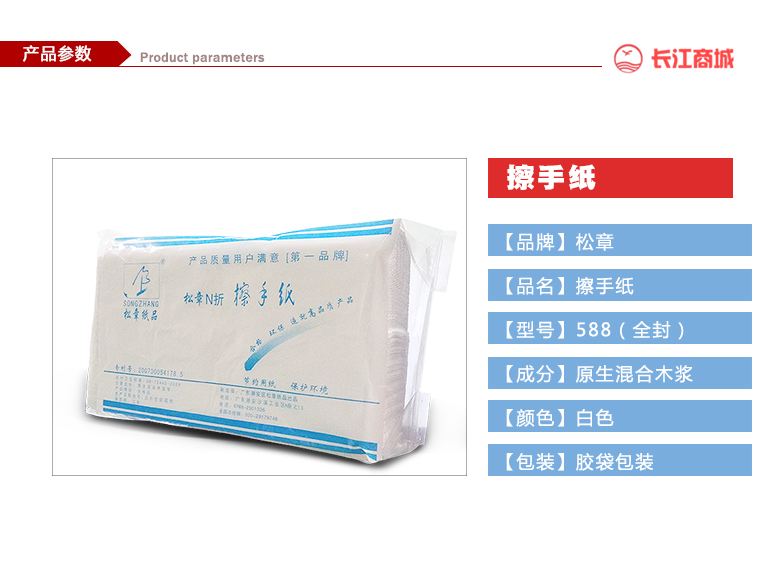 品牌:松章 品名:N折高级擦手纸 型号:588 材质:原生混合木浆