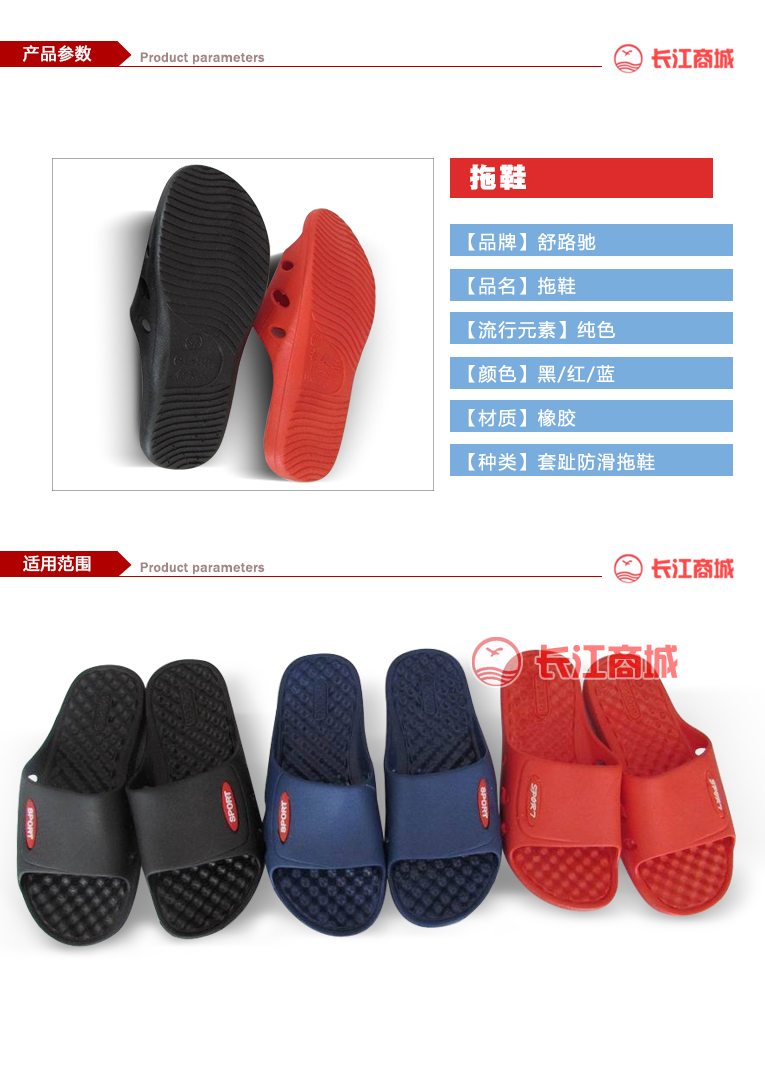 品牌:舒路驰 品名:拖鞋 规格:男装/女装 颜色:红/蓝/黑