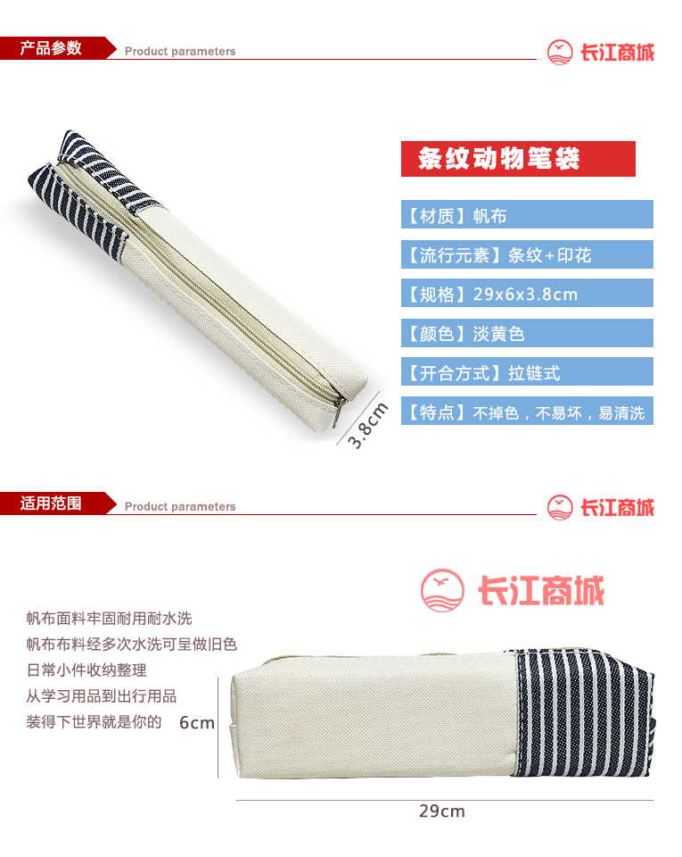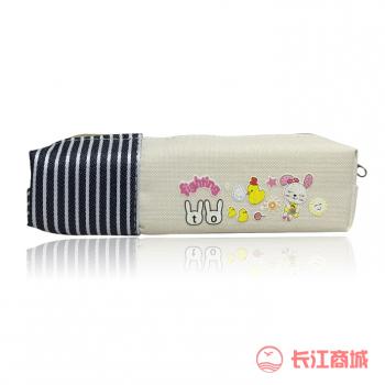 品名:笔袋 材质:帆布 开合方式:拉链式 流行元素:条纹+印花