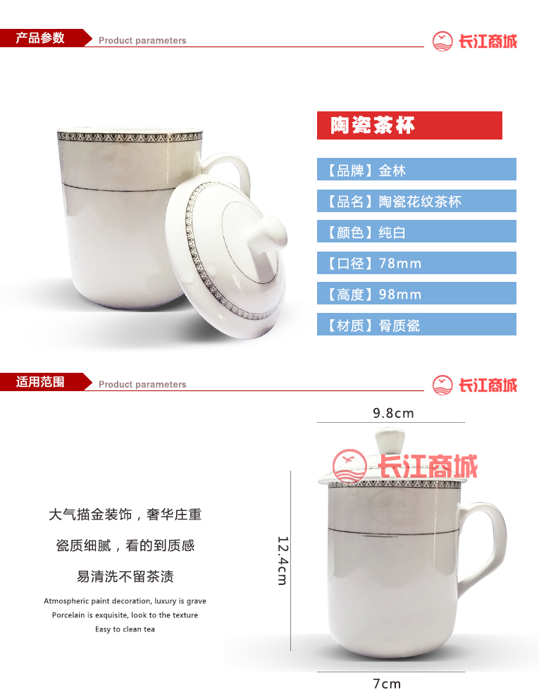 品牌:金林 品名:陶瓷花纹茶杯 颜色:纯白 材质:骨质瓷