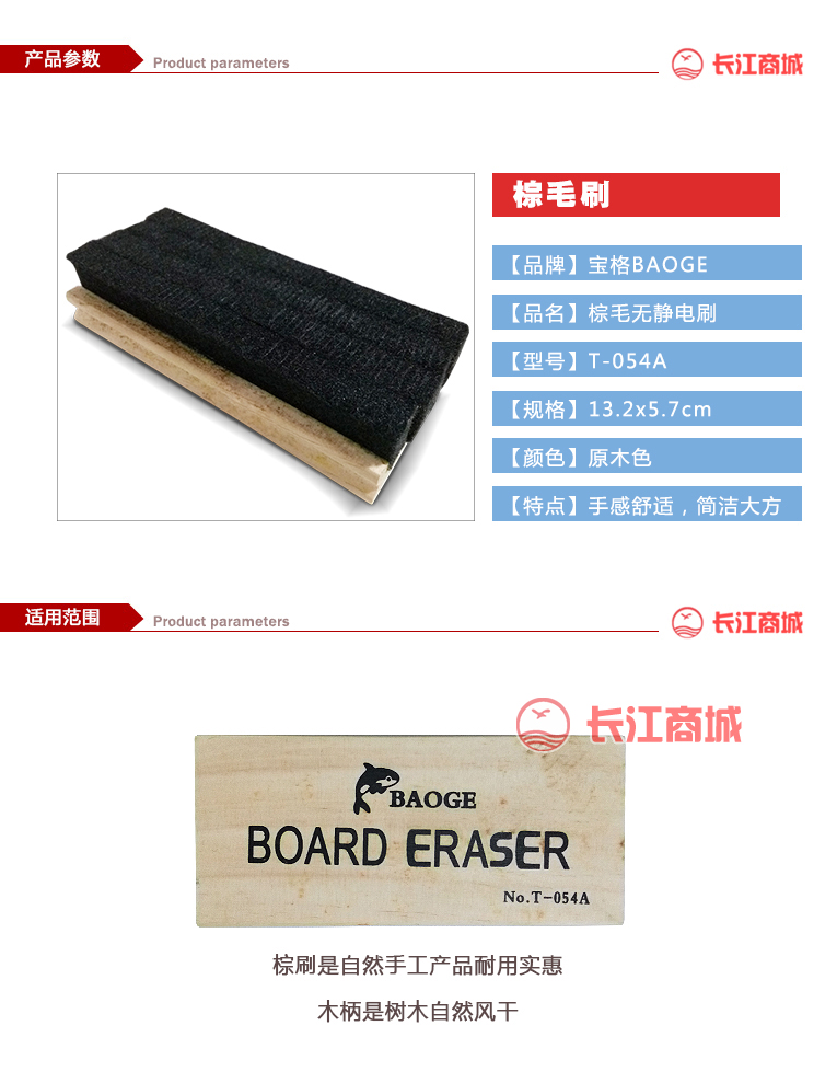 品牌:宝格baoge 品名:棕毛无静电刷 型号:T-054A 规格:13.2x5.7cm