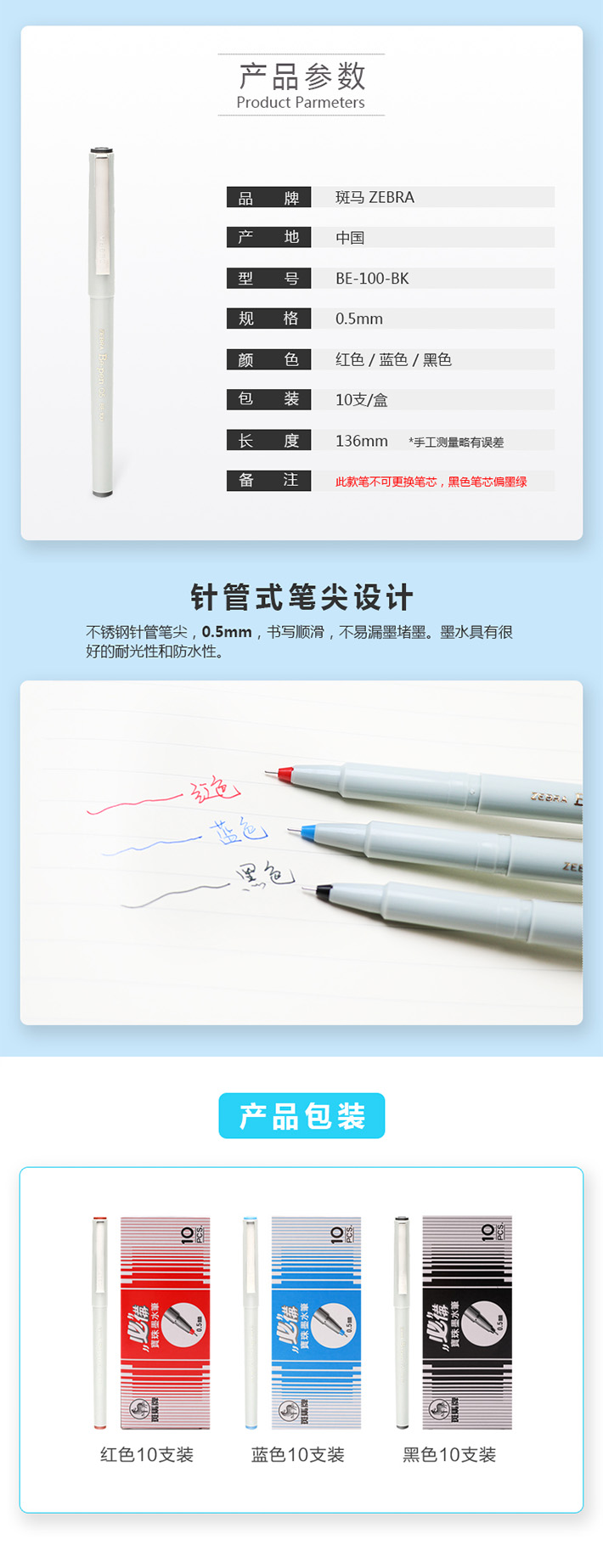 类型:签字笔/中性笔 包装:10支/盒 规格:0.5mm