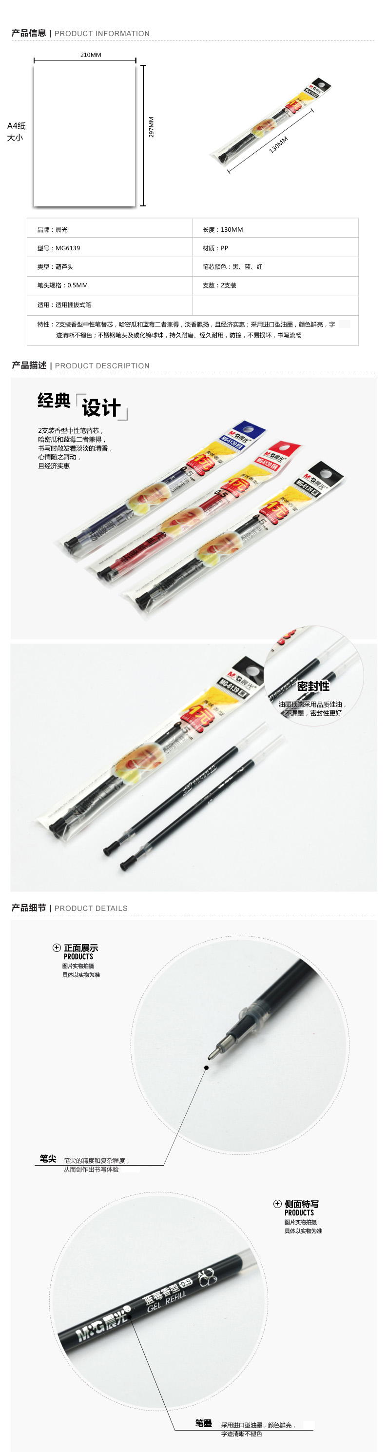 品牌:晨光 型号:MG6139 颜色:黑色 类型:中性笔笔芯/签字笔笔芯