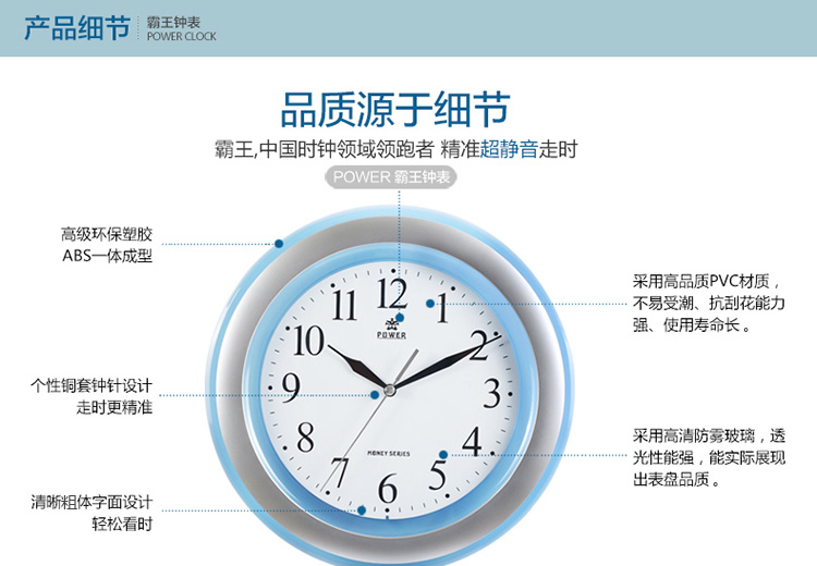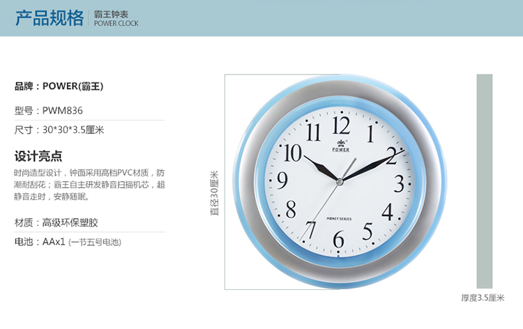 品牌:霸王 品名:石英钟 型号:836# 尺寸: 12英寸