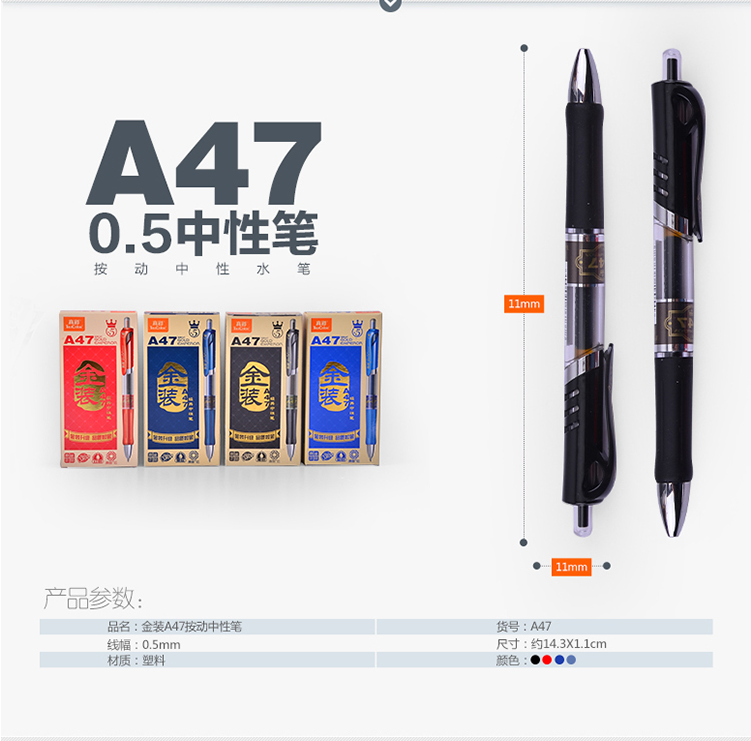 品牌: Truecolor/真彩 型号:A47 品名:按动水笔 颜色: 黑 / 蓝 / 红 / 墨蓝
