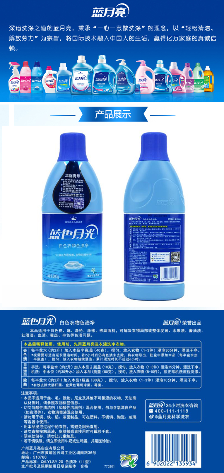 品牌: 蓝月亮 类型:衣物漂白剂 净含量:600g