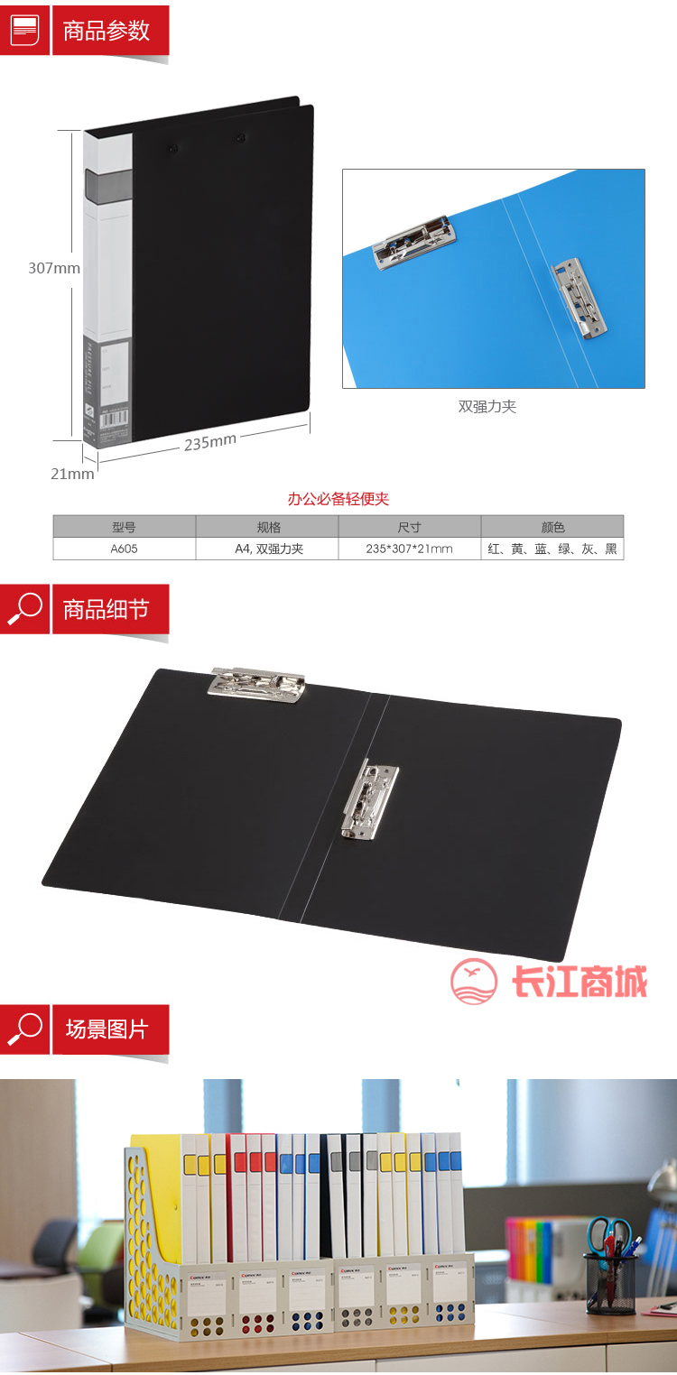 品牌:Comix/齐心 货号:A605 类型:双夹文件夹 颜色分类: 黑/灰/蓝/黄/绿/红 材质:PVC