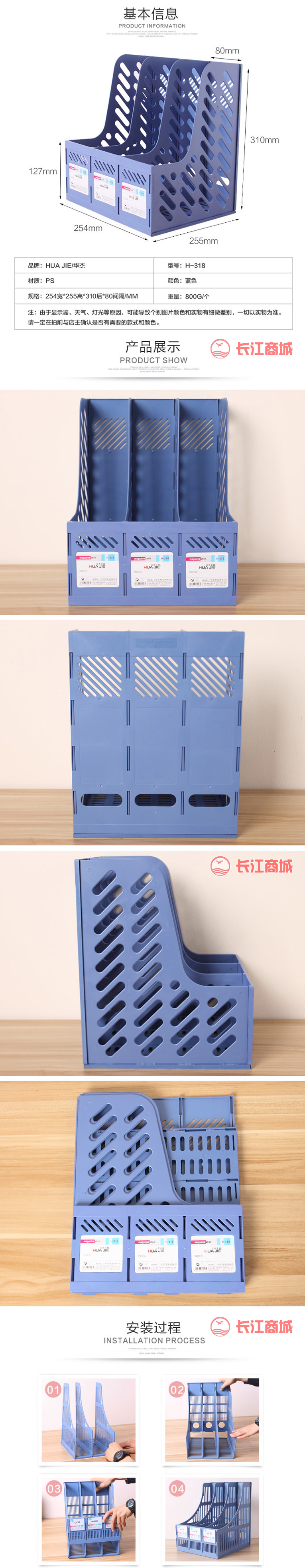 品牌:HUAJIE/华杰 型号:H318 系列:三联文件架 材质:优质PS 颜色:蓝/灰/黑(随机)