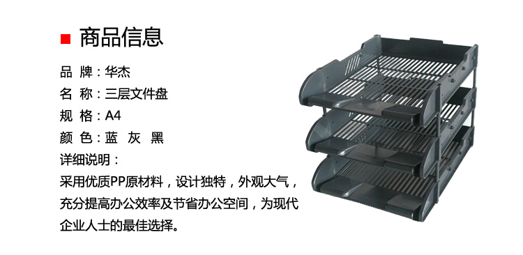 HUAJIE/华杰 系列:三层文件盘 颜色:蓝/灰/黑
