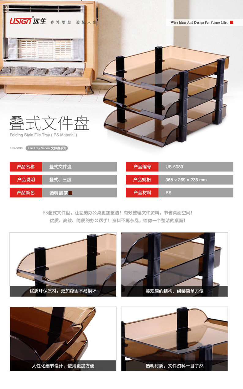 品牌: USIGN/远生 型号:US-5033 类型:三层叠式文件盘 材质: PS