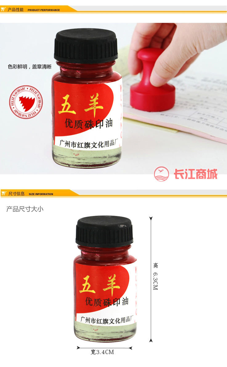 品牌:五羊牌 系列:硃印油 颜色:朱红色 容量:31g 适用:泥巴状/泡沫状印泥添加使用