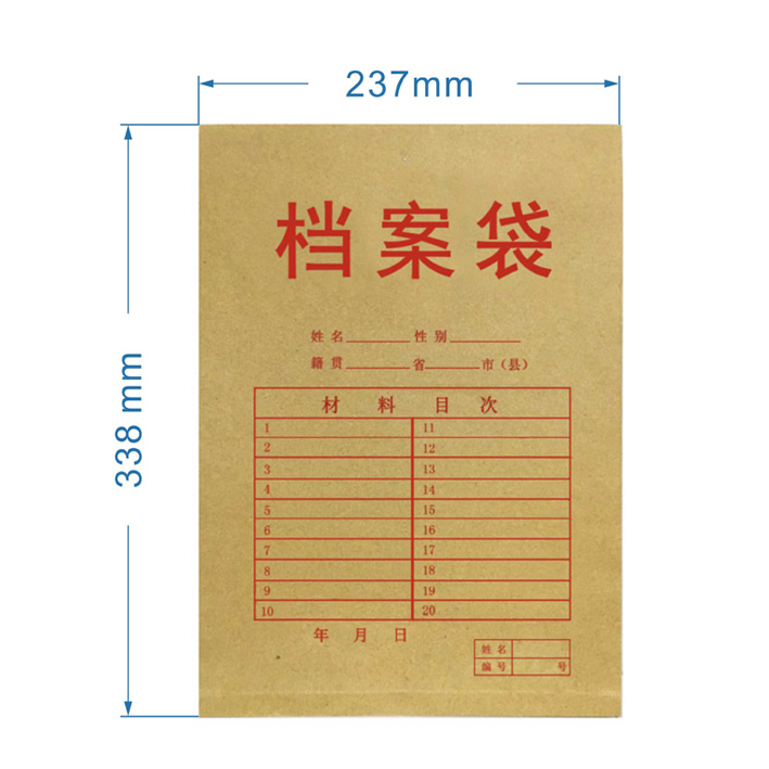 品名:档案袋 材质:牛皮纸 规格:300g/350g/400g 包装:50个/包