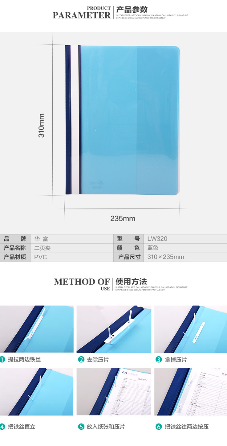 品牌:华富/鹰牌 型号: LW-320 类型:装订报告夹 包装: 10个/包 规格:310×235mm