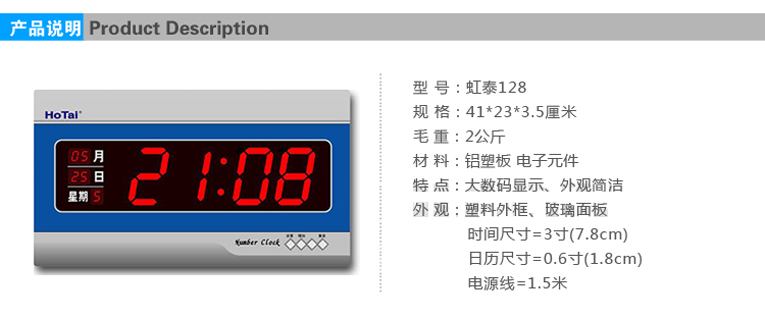 品牌:Hotai 分类:数码万年历挂钟电子钟/静音夜光钟 型号:a128