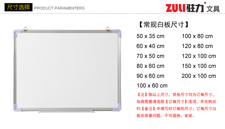 品牌:zuli/驻力 品名:磁性白板 尺寸:常规尺寸/订做尺寸