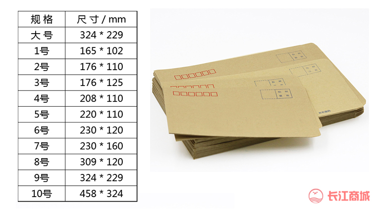 品名:牛皮纸信封 规格:1号/2号/3号/4号/5号/6号/7号/8号/9号/10号 包装:100个/包