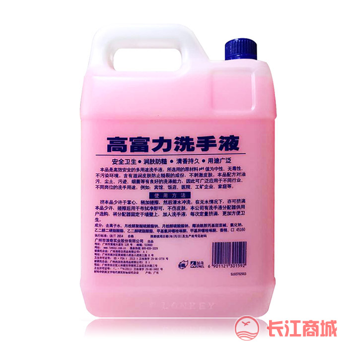 品牌:浪奇高富力 品名:洗手液 净含量:5kg 包装:3瓶/箱 尺寸:长19x宽11x高30cm