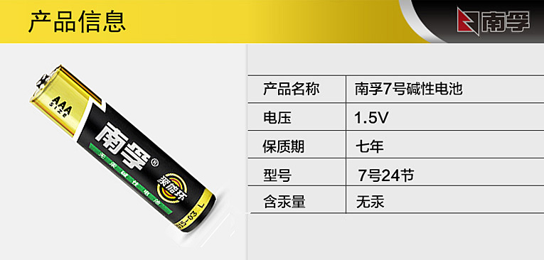品牌:南孚 型号:5号/7号 类型:碱性电池 电压:1.5V 包装:2粒/卡,60粒/盒