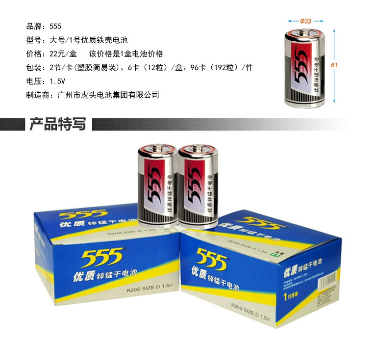 品牌:555 型号:大号/1号 类型:普通锌锰电池