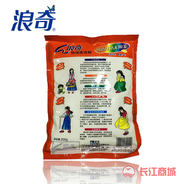 品牌:浪洁 类型:快洁洗衣粉 净含量:200克 包装:48包/袋