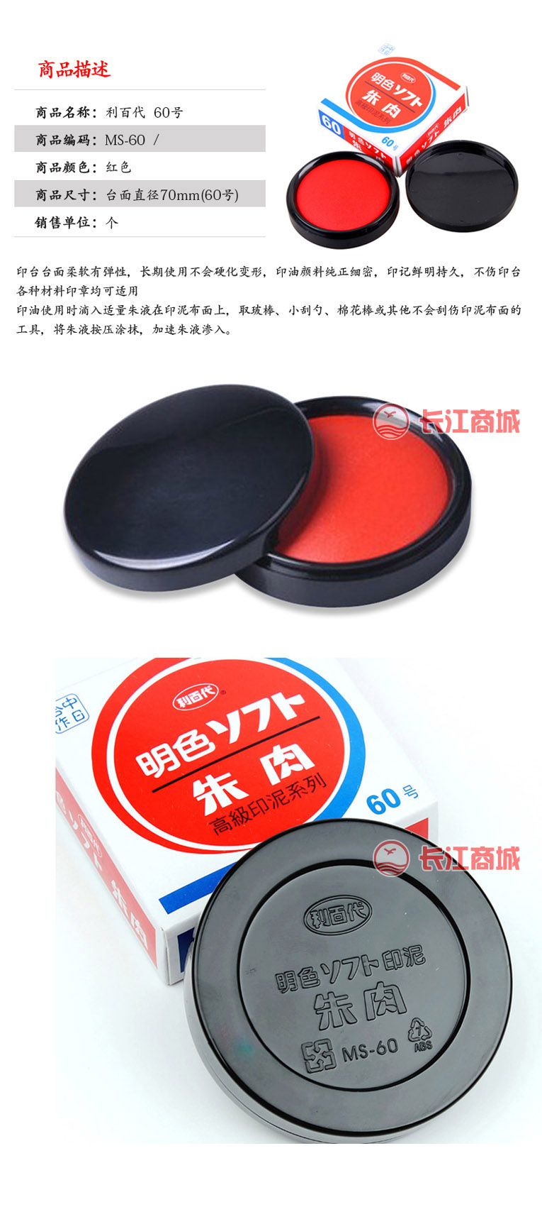 :利百代 型号:MS-60 类别:高级印泥 颜色:朱肉红色 尺寸:直径70mm