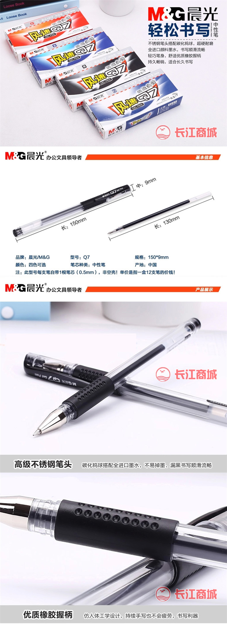 品牌:M&G/晨光 型号:Q-7 类别:中性笔 颜色:黑色/蓝色/红色/蓝黑色