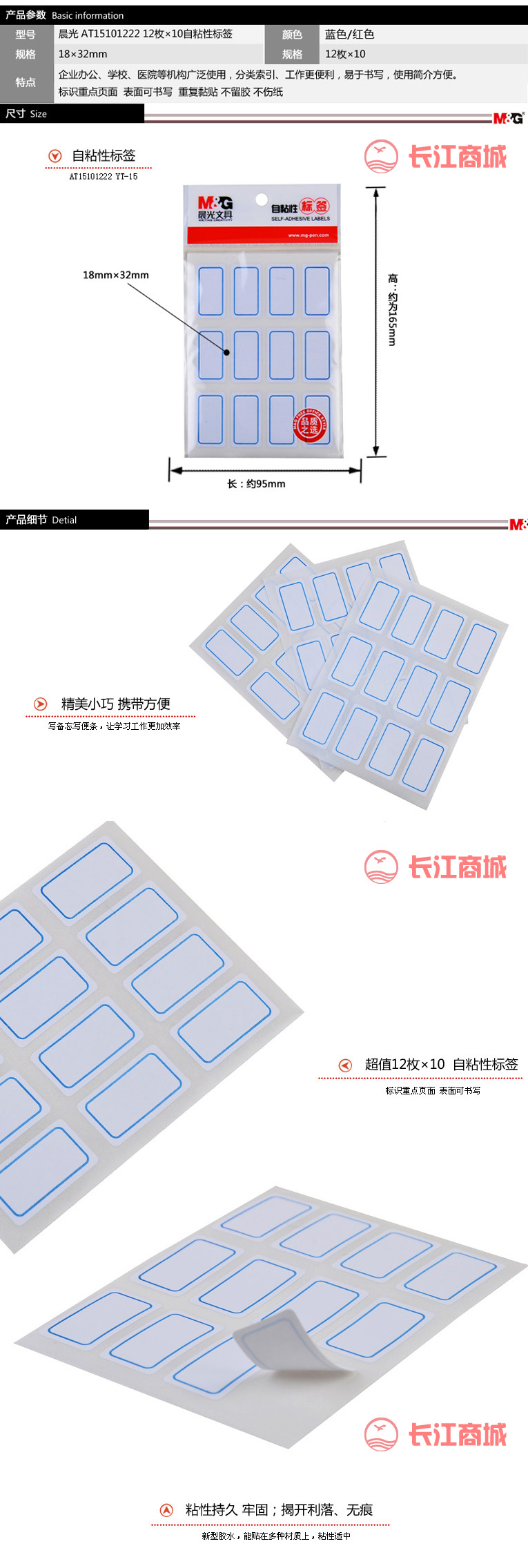 品牌:M&G/晨光 型号:YT-15 品名:自粘性标签/不干胶标签 规格:18x32mm 颜色:蓝色/红色