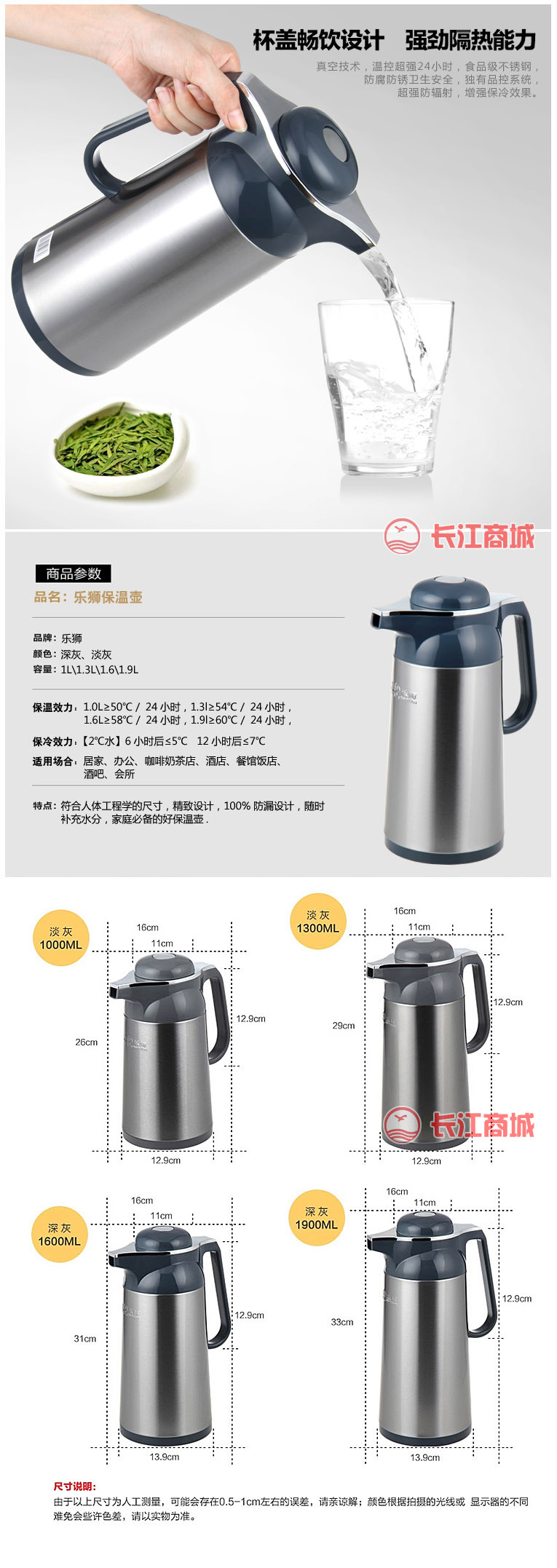 品牌: 乐狮 规格: 1000毫升 1300毫升 1600毫升 1900毫升 容量:1.6L(含)-2L(含) 材质: 不锈钢